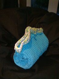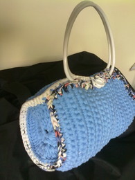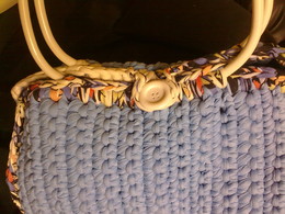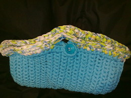 mala azul claro com mesclado e asa branca plástica e botão branco