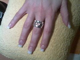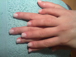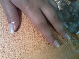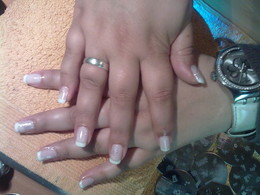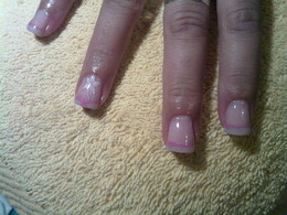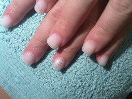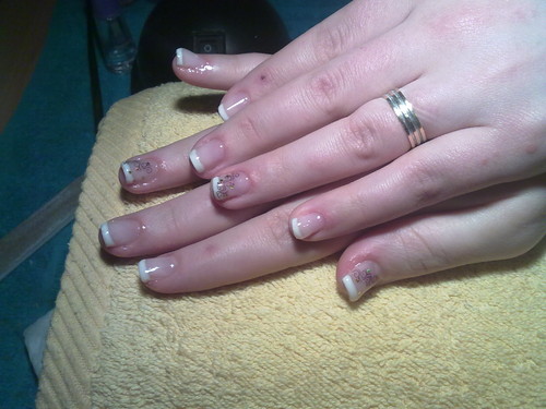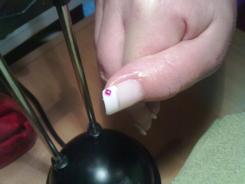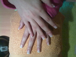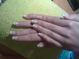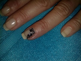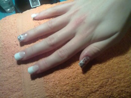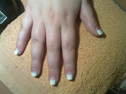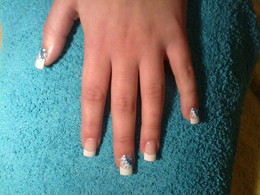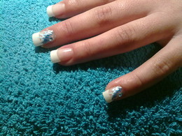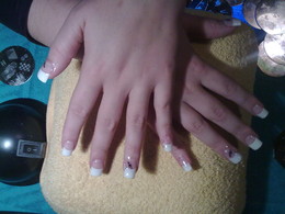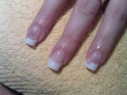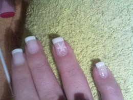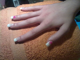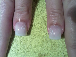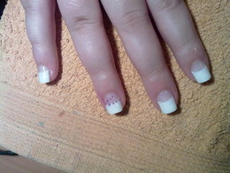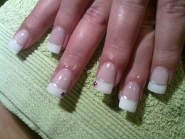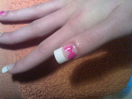 unhas de gel com ponta branca e 1sapinho rosa