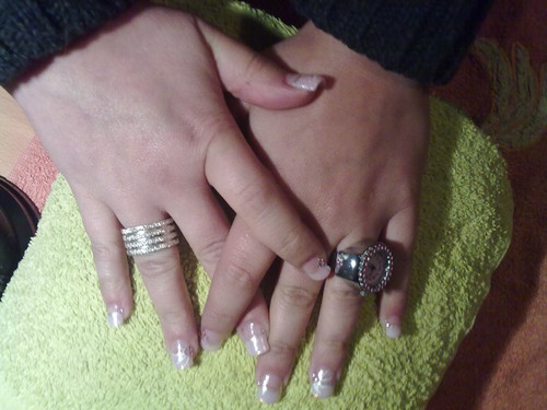 unhas de gel com flores prateadas