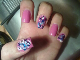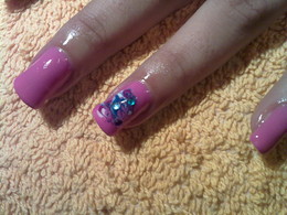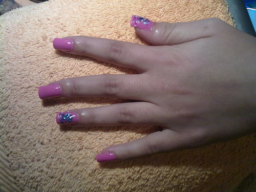 unhas de gel rosa com brilhantes