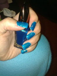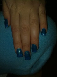 unhas de gel em tons de azuis com brilhantes