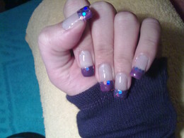 unhas de gel com ponta branca e flor em lilás