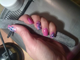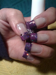 unhas de gel com ponta lilás e hologramas