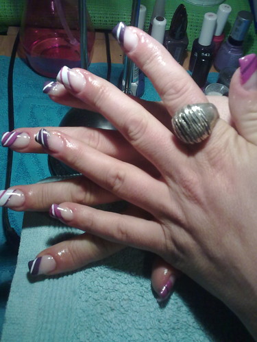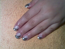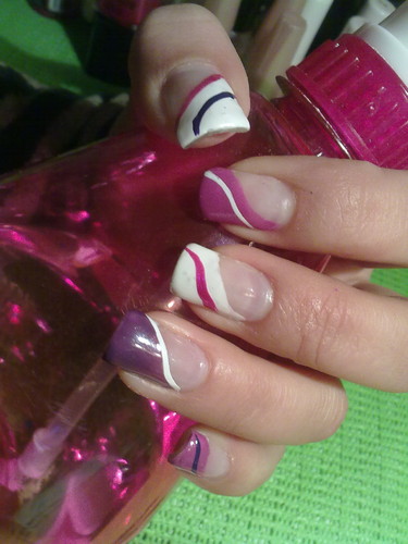 unhas de gel com pontas às riscas