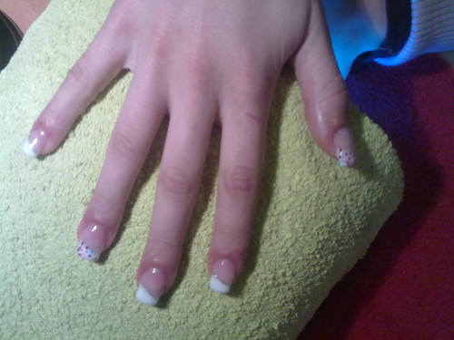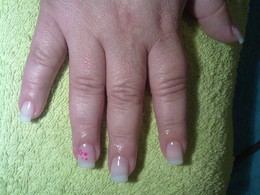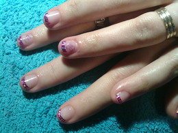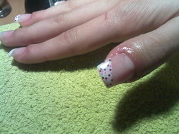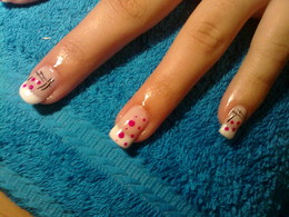 gel sobre a unha natural com pintas rosa