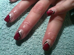 unhas de gel vermelhas com pintas