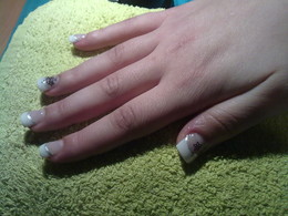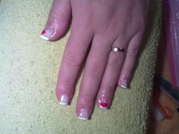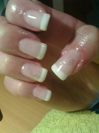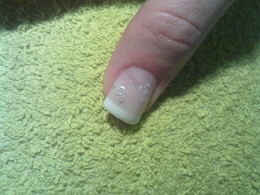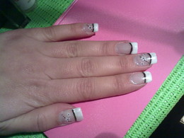 unhas de gel com ponta branca e brilhantes rosa