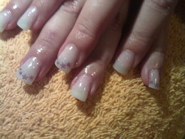 unhas de gel com ponta com flakes rosas