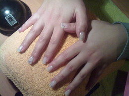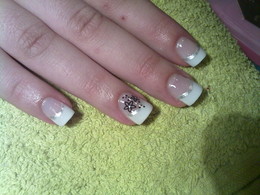 unhas de gel com ponta branca e brilhante
